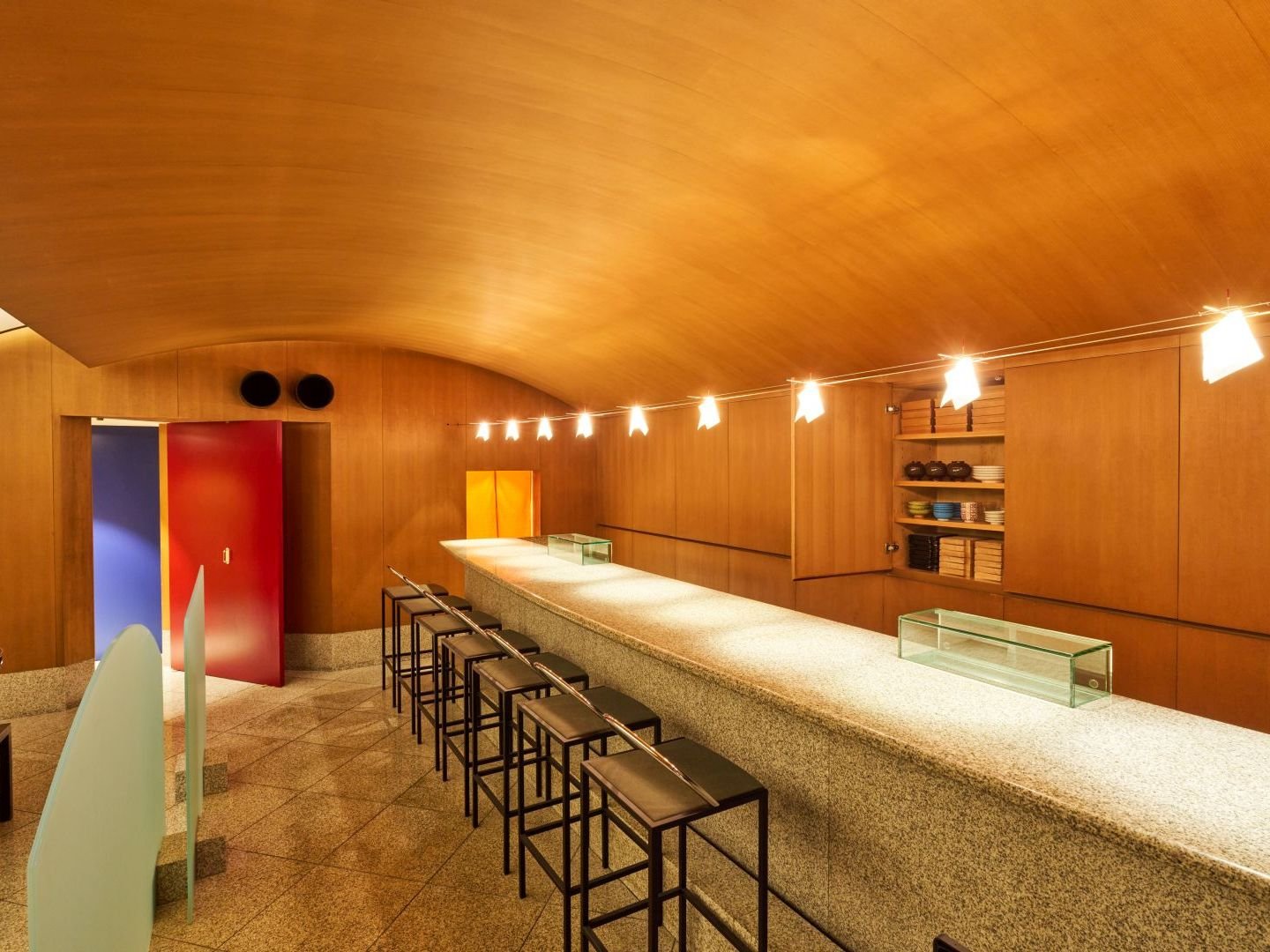 日本からの移築で開館時に話題を呼んだ倉俣史朗氏のデザインによる『清友壽司吧』。