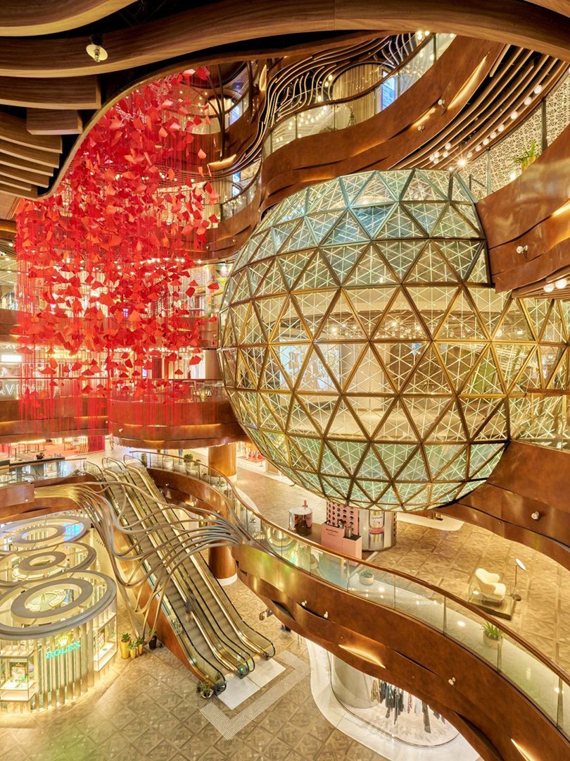 吹き抜けには、巨大なゴールデンボールのオブジェが設置され、クリエイティブスペースとして利用される。
