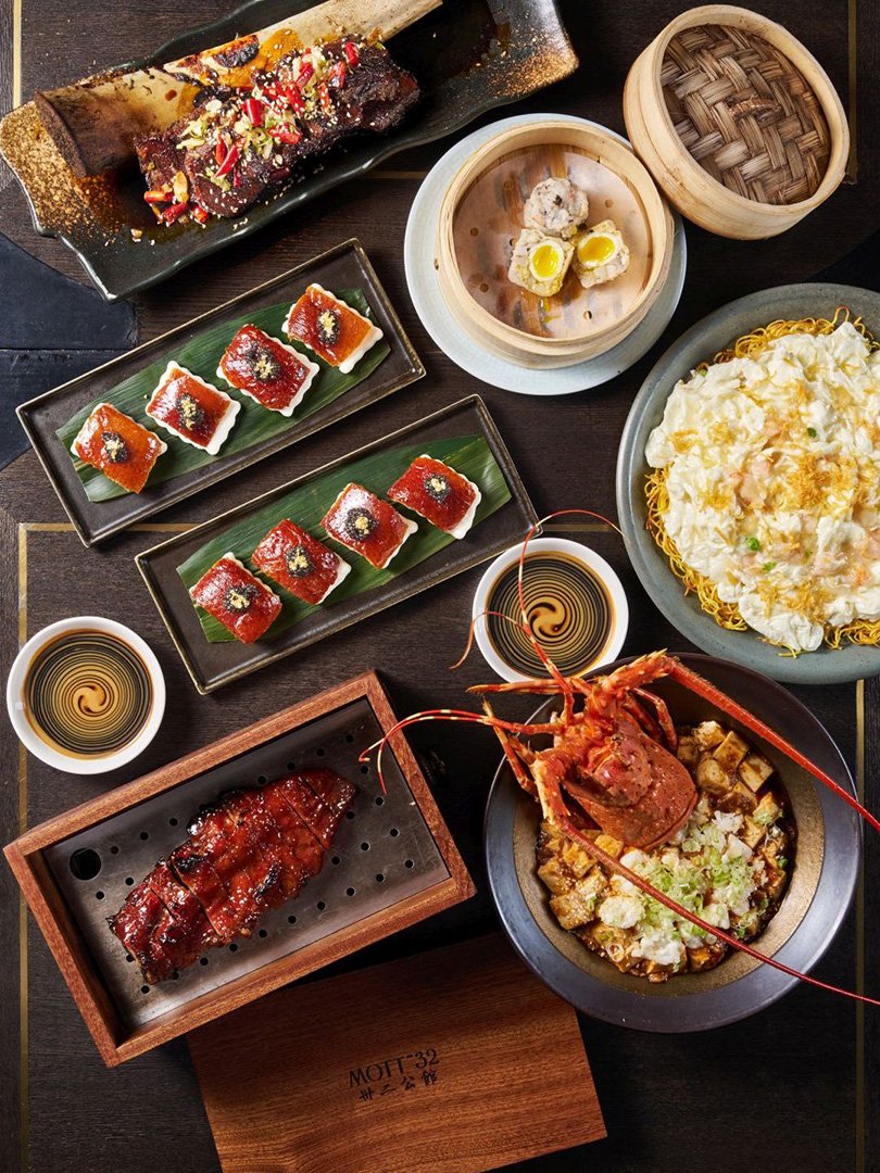 世界中から美食家が集う名店、「MOTT 32」。名物料理は北京ダックとチャーシュー。リンゴの木を使ってローストしたダックは、皮のパリパリ感や肉質、脂のりのよいものを厳選。そこから8カットのみを切り出し、自家製バオにのせてキャビアとともにいただく。チャーシューはテーブルで香ばしいスモークを立たせる演出とともに提供される。