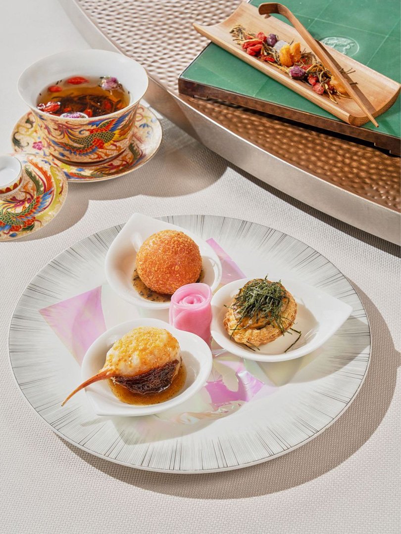 リージェントホテルとともに22年ぶりに香港に復活した「麗晶軒」は、まさに広東料理の神髄にふれられるレストラン。ここで楽しみたいのは、美しく丹精込めて作られた点心。つねに新しい食材や調理法を模索し、最高峰の味と技術をフルに生かした最先端の品々で食通を唸らせる。挑戦的な試みはお茶にも反映されていて、香港で初めてティーソムリエを常駐させた同店は、新しいペアリングの可能性を提案してくれる。