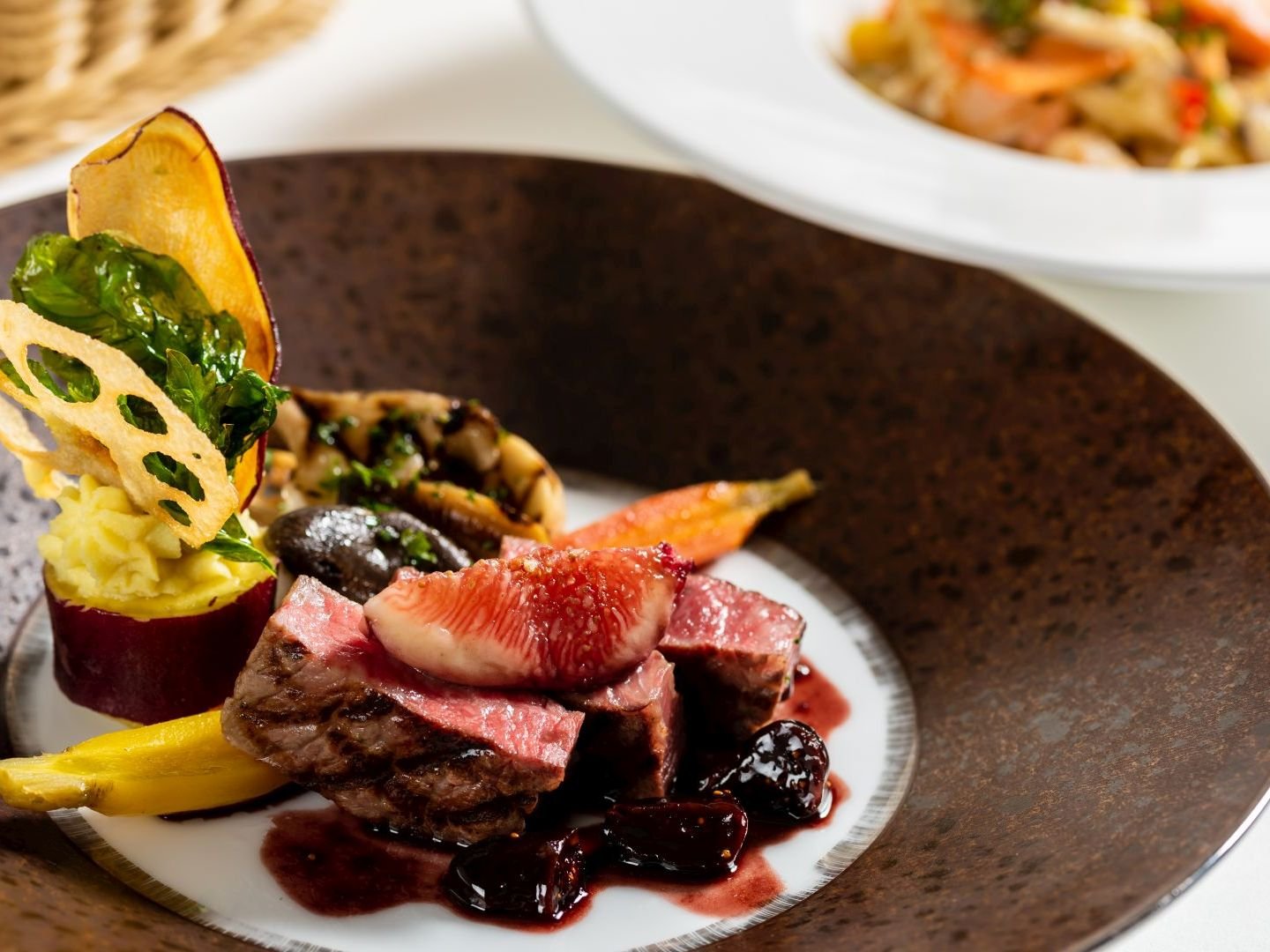 アクア ダイニングの洋食創作料理はディナーコースで。旬の味覚や厳選食材を使用している。