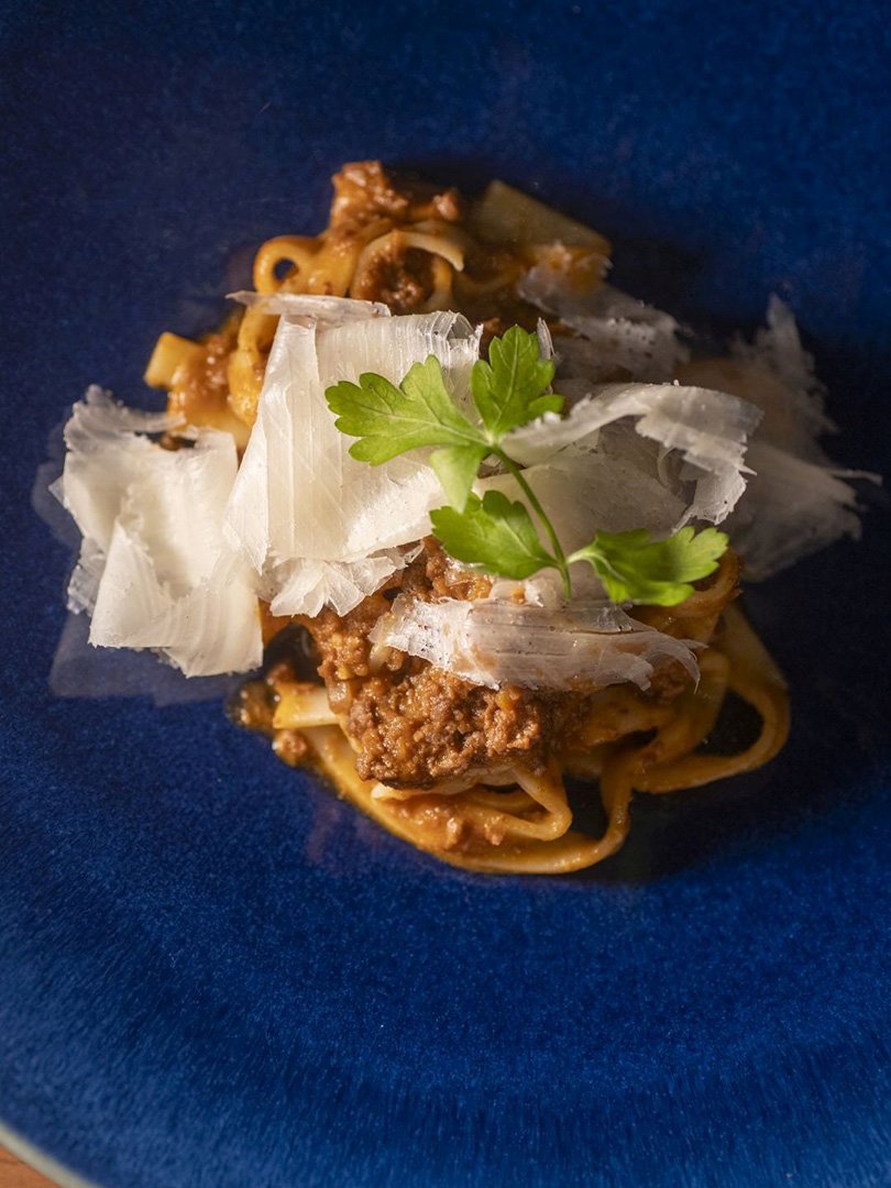 ダイニングはオープンキッチンを中心に、カウンター席やテーブル席、個室が配されている。テーブルから照明、器、カトラリーまでフルオーダーであつらえ、食事を楽しむための空間を創りあげた。ジビエの熟成庫やワインセラー、パン小屋まであり、どれをとっても妥協はない。