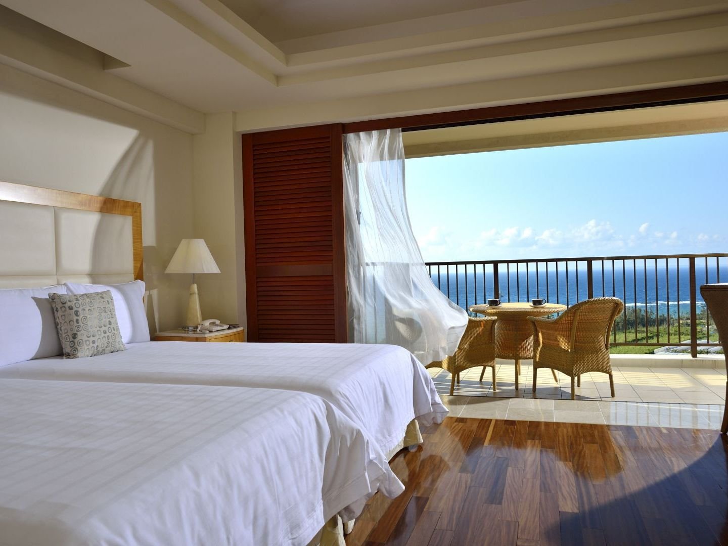 東シナ海の眺望をひとり占めできるテラススイート。全室52平方メートル以上の広さが確保され、開放感たっぷり。