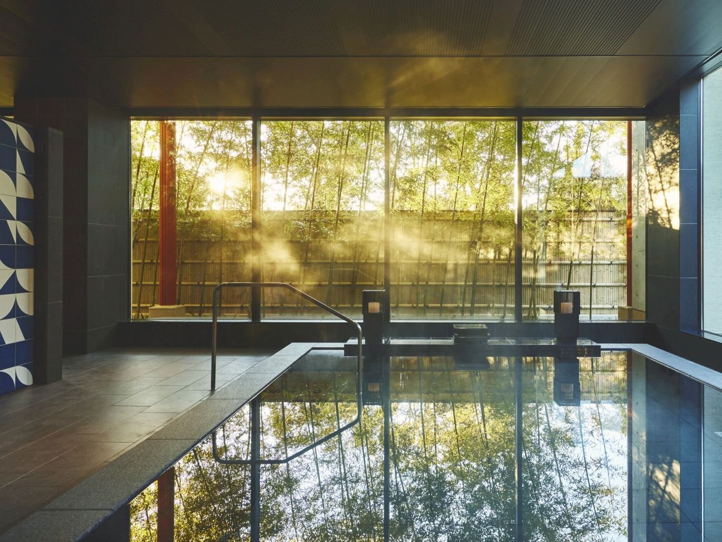 犬山城と近くを流れる木曽川、あるいは有楽苑を見晴らせる客室もある。すべての部屋にテラスを備え、インテリアはモダンで明るく遊び心満載だ。もっとリラックスするなら肌にやさしい温泉へ。竹林に囲まれた開放感あふれる露天風呂やサウナもあり、歴史に思いを馳せながら湯に浸かるのは、このうえないくつろぎの時間だ。