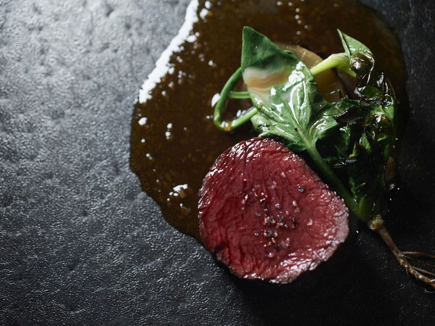 ニホンジカなどのジビエは冬の定番。谷口氏が自ら皮を剝ぎさばいて、熟成庫で寝かせてから調理する。常識にとらわれず、富山の食材を使いこなすのが谷口流。器やカトラリーにもこだわっている。