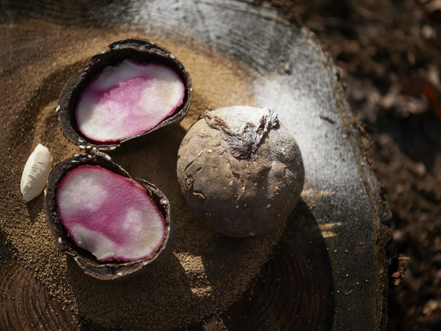 森の腐葉土で包み焼きにした、利賀村在来種の赤カブ。