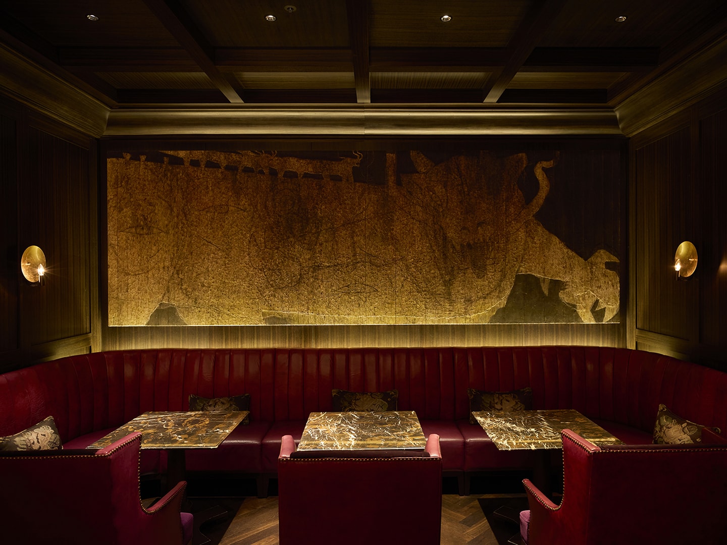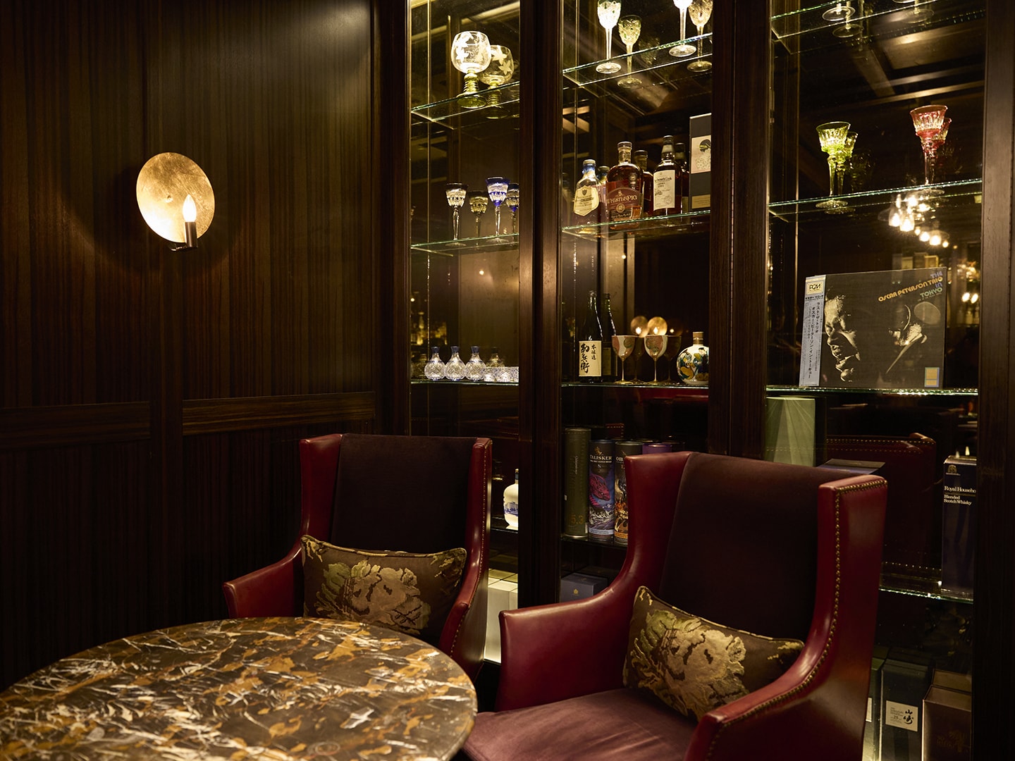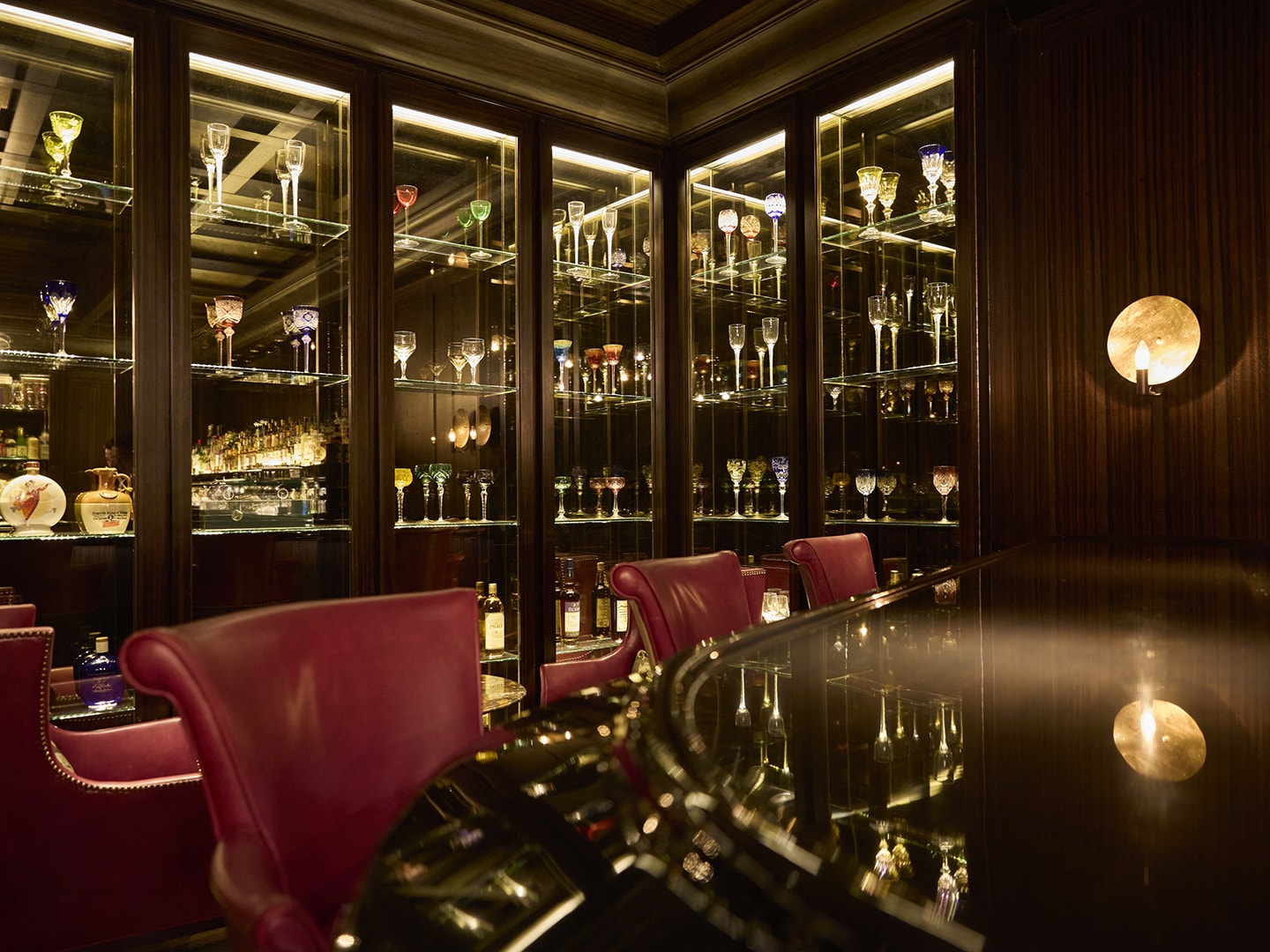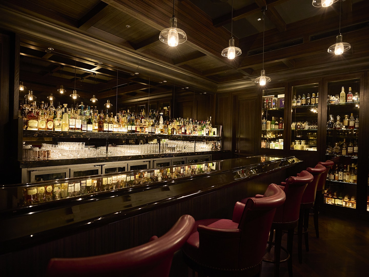 高い天井の優雅なエントランスを進み、重厚感のある扉を開ける。その先にはぐっと落ち着いた色調でいながら、飾られるグラスやボトル、照明が反射するカウンターとあらゆるところが磨き上げられたまばゆい空間が広がっている。