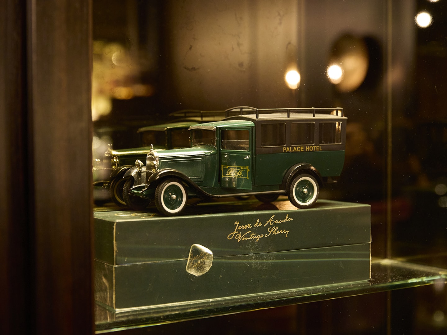 レトロなミニチュアカー。よく見ると車体に「PALACE HOTEL」の文字を見つけることができた。