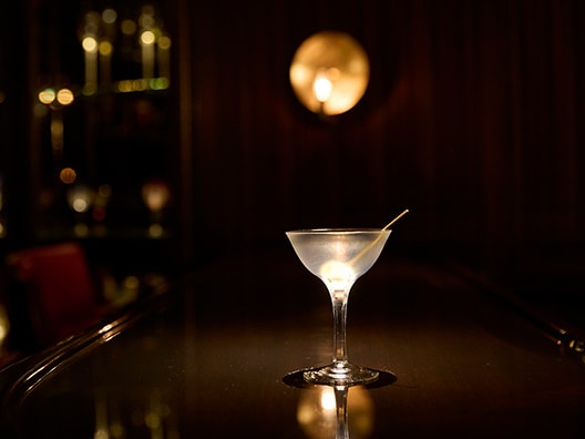 初代チーフバーテンダー、今井清さんから受け継ぐカクテルの王様、ドライ マティーニ(2,200円)。食前酒として愉しむために、アルコールの強いカクテルながら早い時間から注文が入ることも多々。