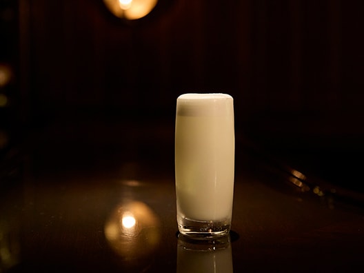 まずは、バーの代名詞ともいえるドライ マティーニ。そして、もうひとつの名物として、パレス ジンフィズが登場した。これは少量の牛乳を注いだジンフィズで、第二次世界大戦後、駐留軍の将校が明るいうちからこっそりアルコールを嗜むためにミルクを入れたことから誕生したという。