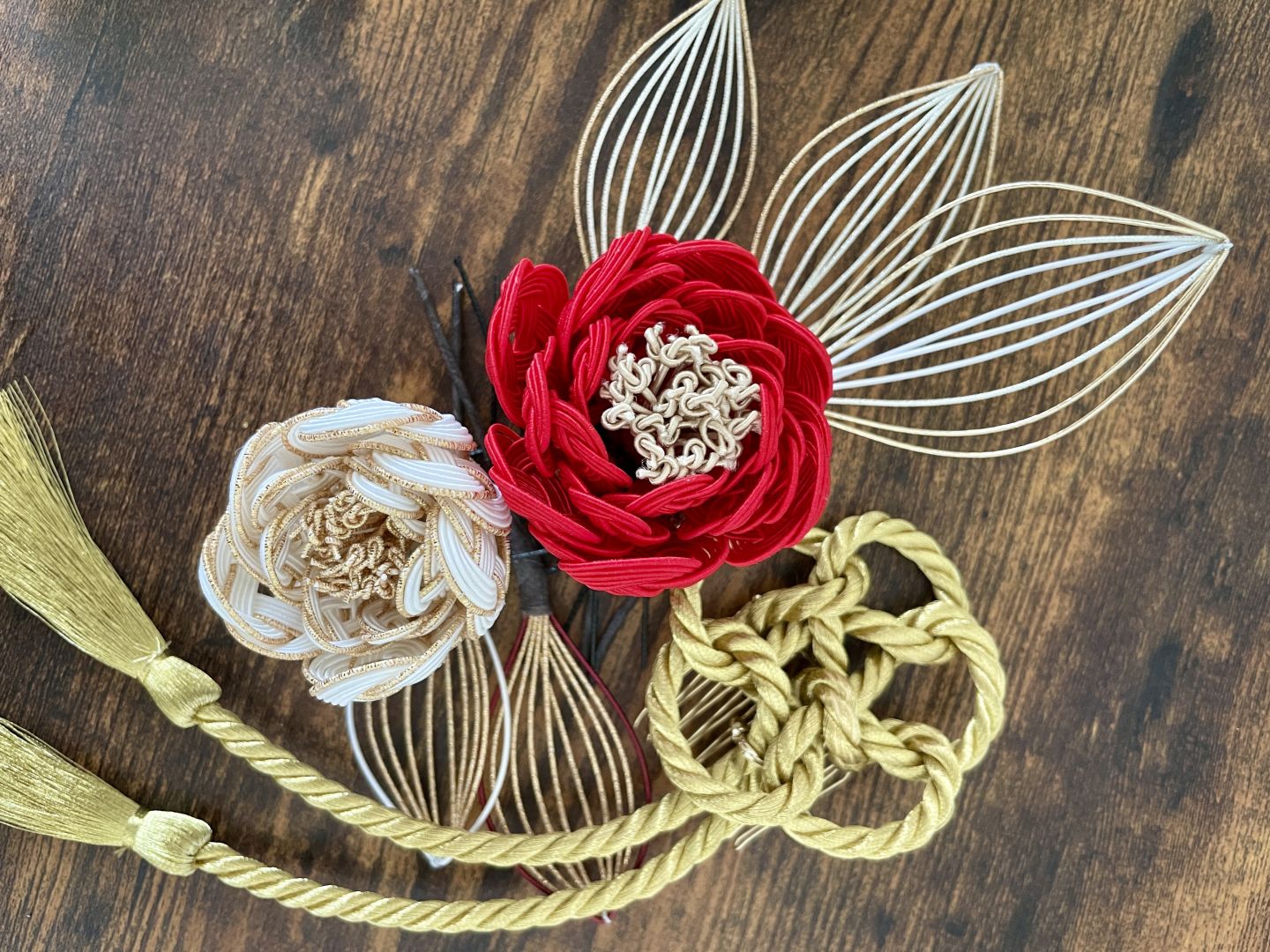 基本のあわじ結びを習得すれば、繊細なデザインの髪飾りを作ることも可能。