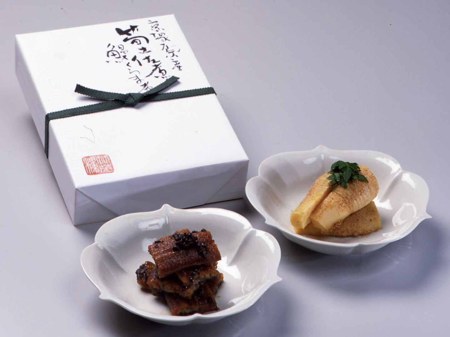 朝掘りのタケノコを特製だしとカツオ節のうまみで上品に煮含めた土佐煮と、鹿児島産鰻を春の山椒で炊きあげた鰻の山椒煮を詰め合わせたひと品。京都の契約農家でとれるタケノコのみを使用しており、販売は例年4月ごろ、春の約1ヵ月間の限定となる。山椒の香り高い鰻は、お茶漬けでいただくのも格別。春の繊細な味わいで、ぜいたくな朝餉(あさげ)を楽しみたい。