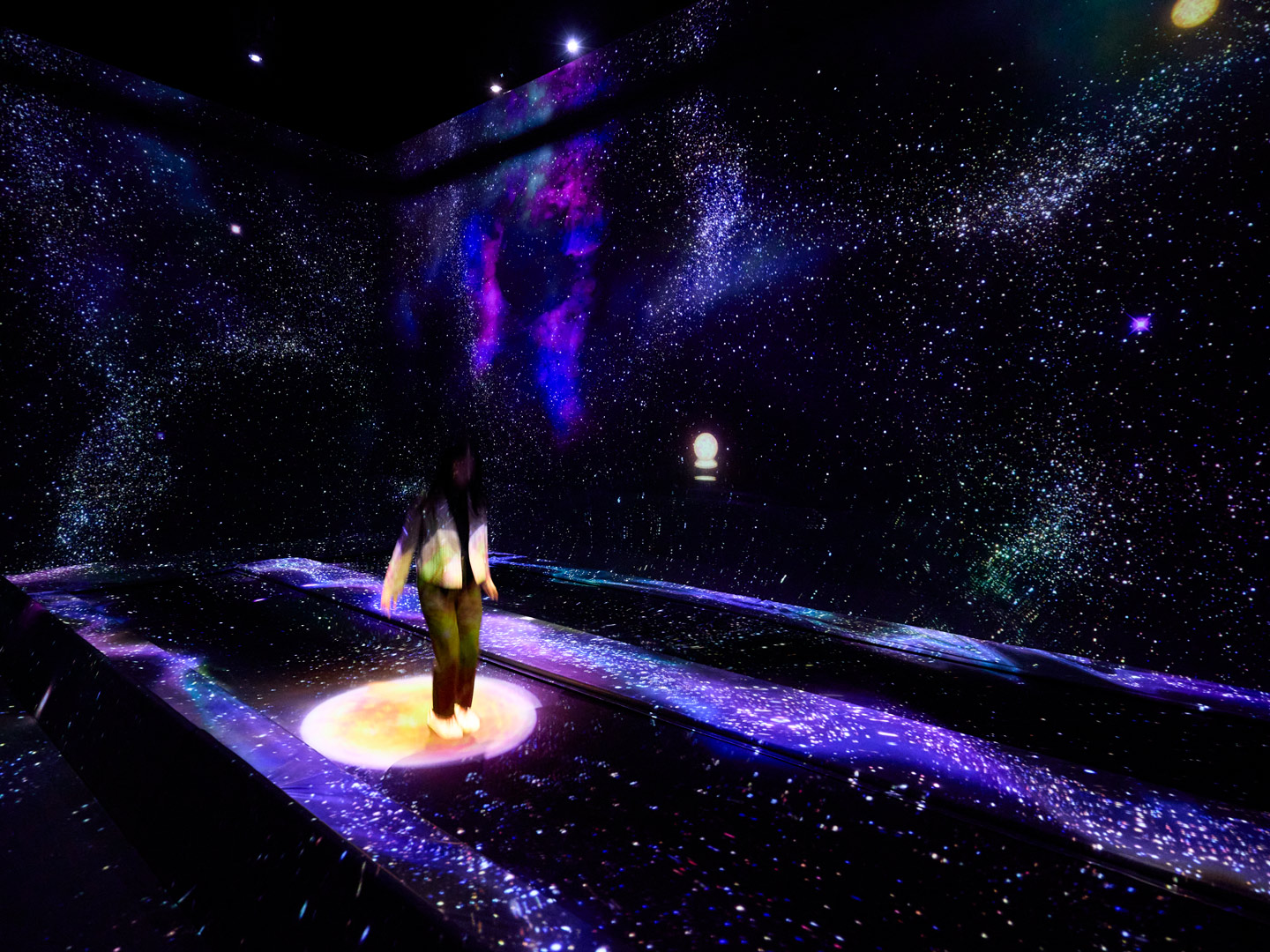 宇宙空間を模した「マルチジャンピング宇宙」では、トランポリンの道を跳ねて進みながら星を生み出すことができる。(12歳以下の方のみ体験可能)