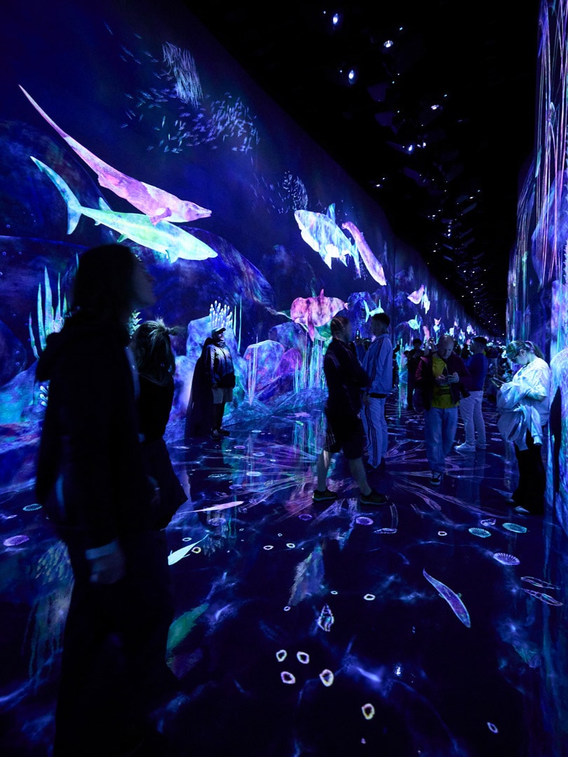 そんなチームラボが手掛けるミュージアムの一つ、東京・豊洲のチームラボプラネッツのコンセプトは、“身体ごと没入できるミュージアム”。靴を脱ぎ、裸足で水中を歩くという身体的体験が作品と呼応し、アートと一体になれることが特長だ。2024年には“単一アート・グループとして最も来館者数が多い美術館”としてギネス世界記録に認定。東京のホットスポットとなっている。