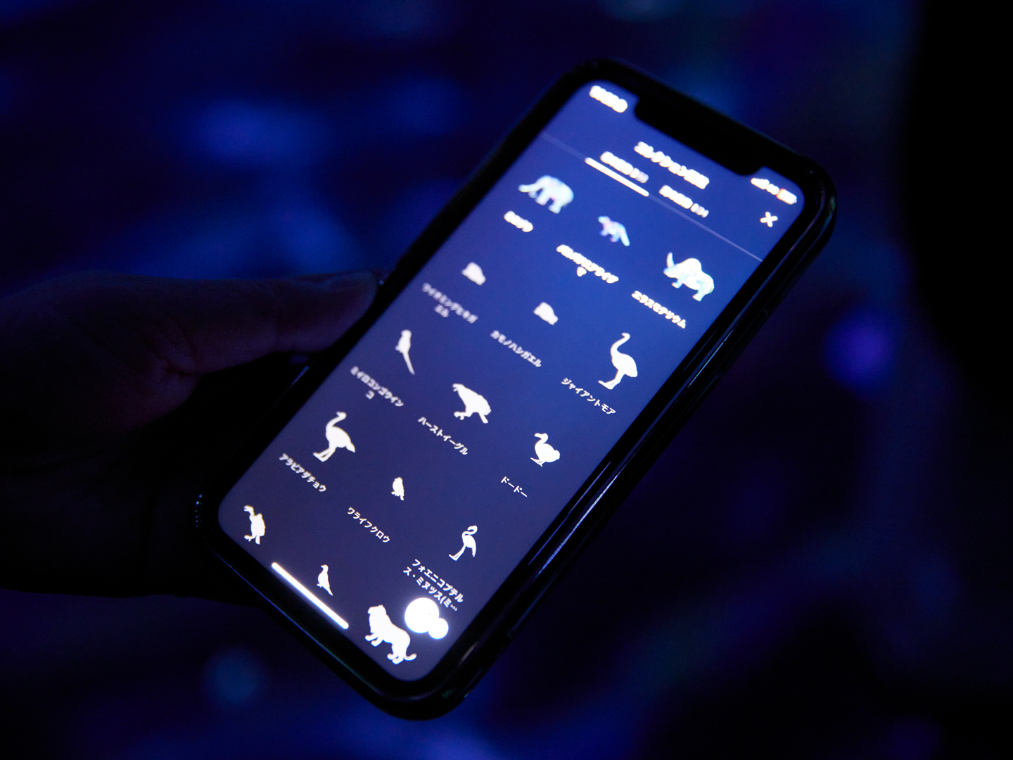 捕まえた絶滅動物はスマートフォンのアプリに入り「自分だけの図鑑」としてコレクション。選択をすると、動物の詳細情報を知ることができる。
