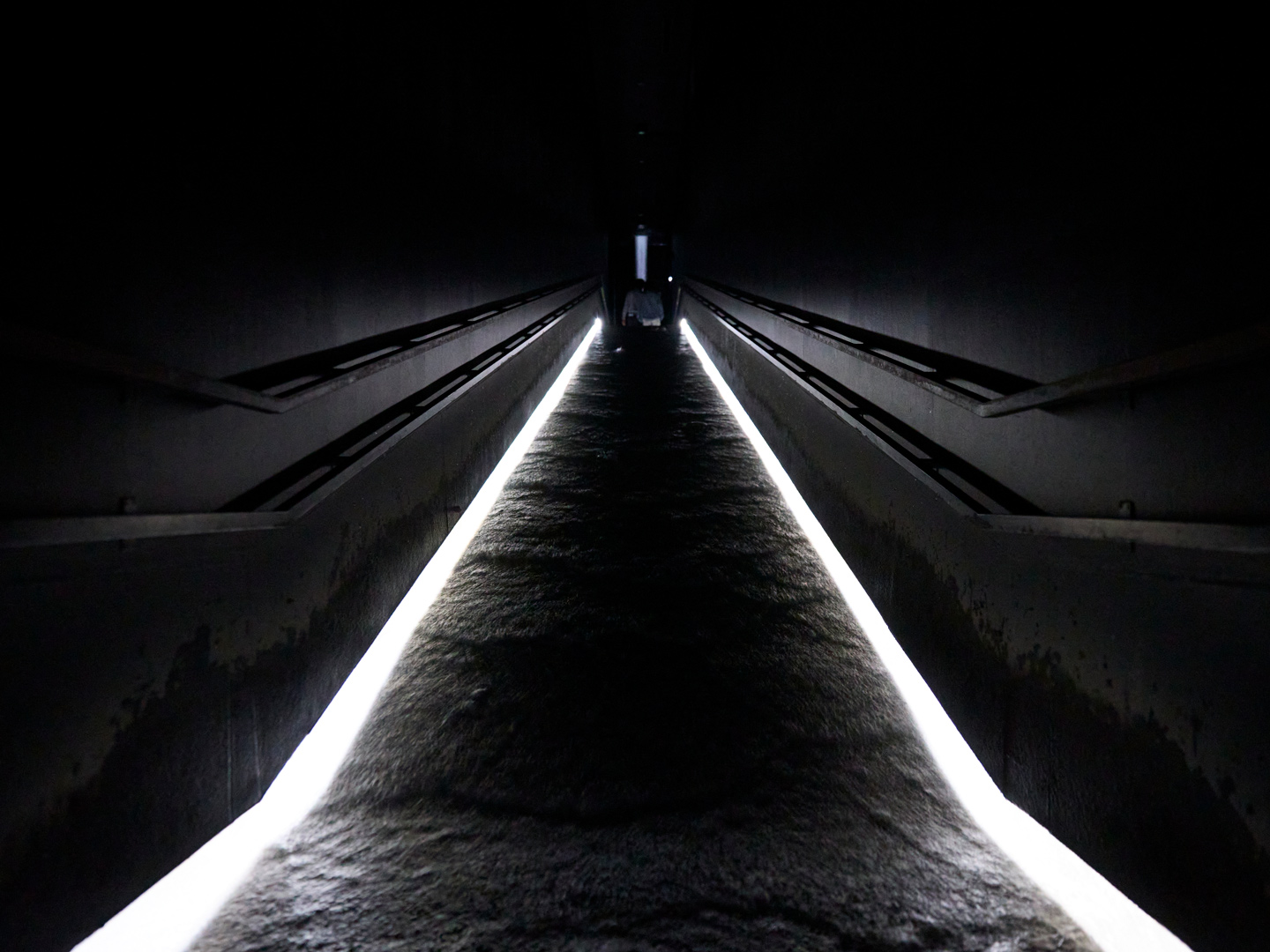Waterエリアの冒頭に現れる「坂の上にある光の滝」は、日常から非日常へと感覚を切り替える“通過儀礼”のような役割を果たす。坂の上には、流れ落ちる滝に光をあてた幻想的な空間が。
