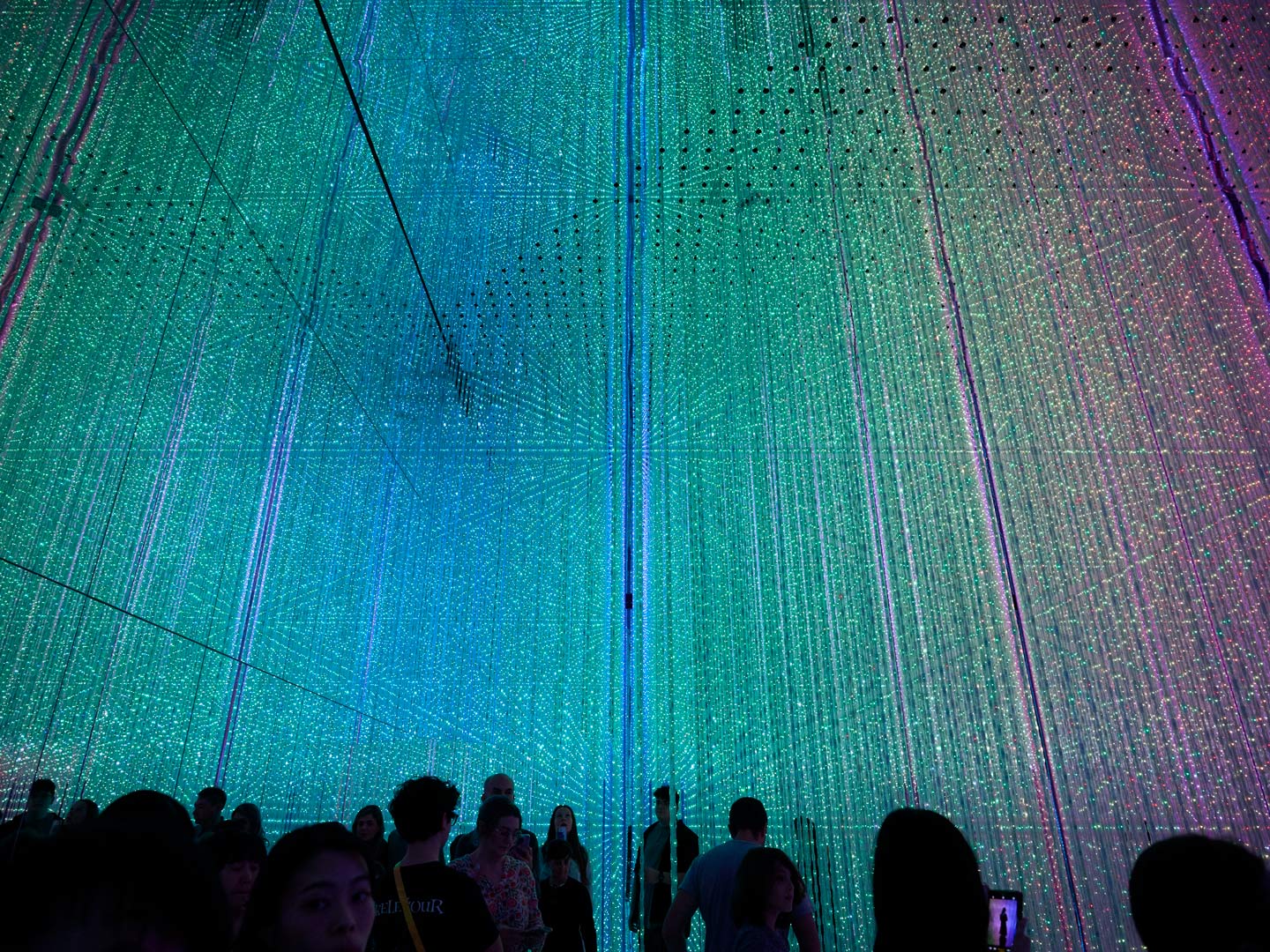 無数の光の点によって構成された、全方位に広がるインタラクティブな宇宙空間「The Infinite Crystal Universe(無限のクリスタル宇宙)」。点描画のような光の作品は刻々と変化し続ける。