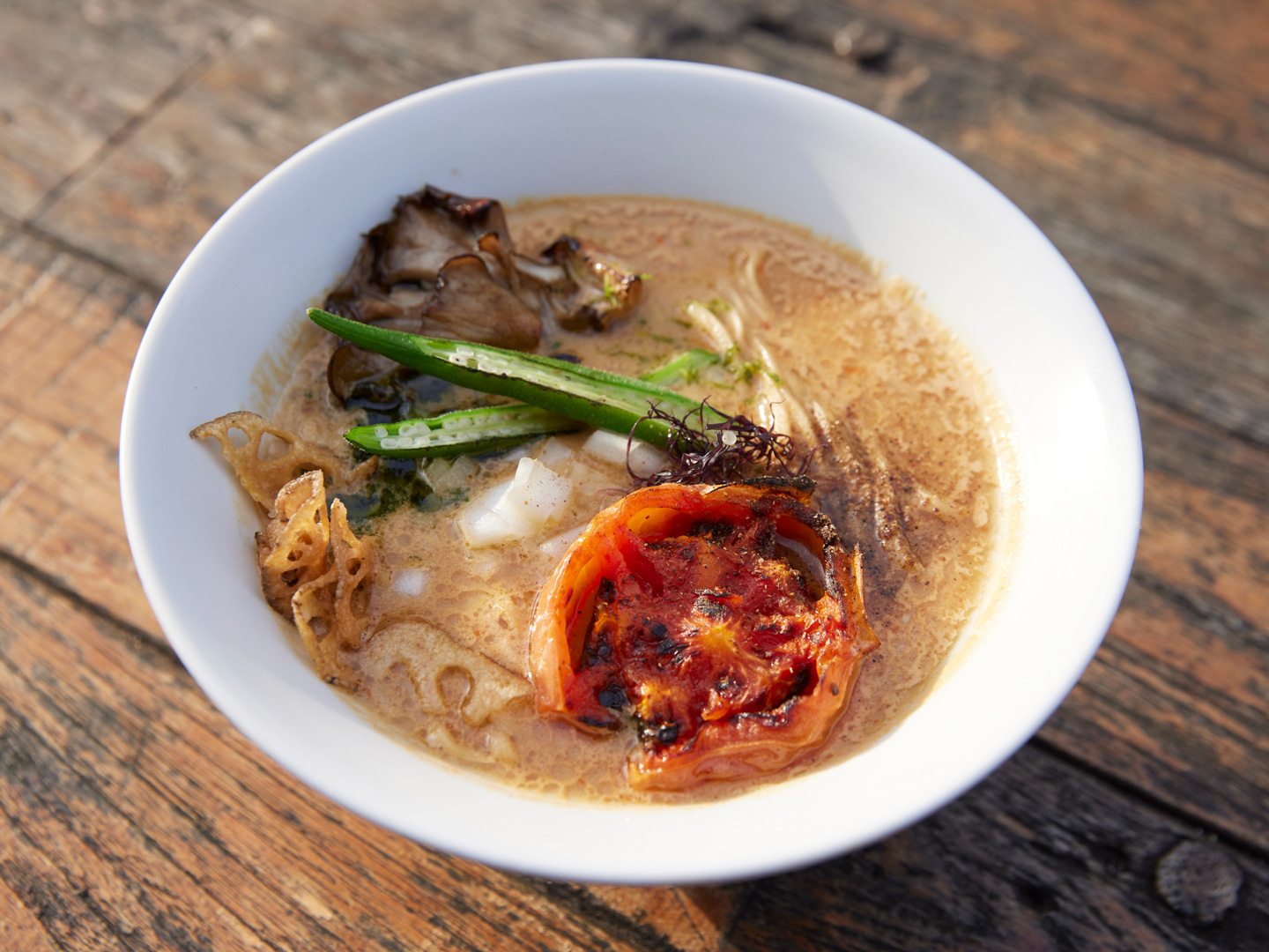 すべての鑑賞を終え、館内を出たところにある「Open-Air」エリアのレストラン「Vegan Ramen UZU」。ここは京都発のヴィーガンラーメン専門店で、「チームラボプラネッツ」の来場者のみが入店できる。アートの世界から現実に戻るその境目に、あたたかな一杯がそっと寄り添う。