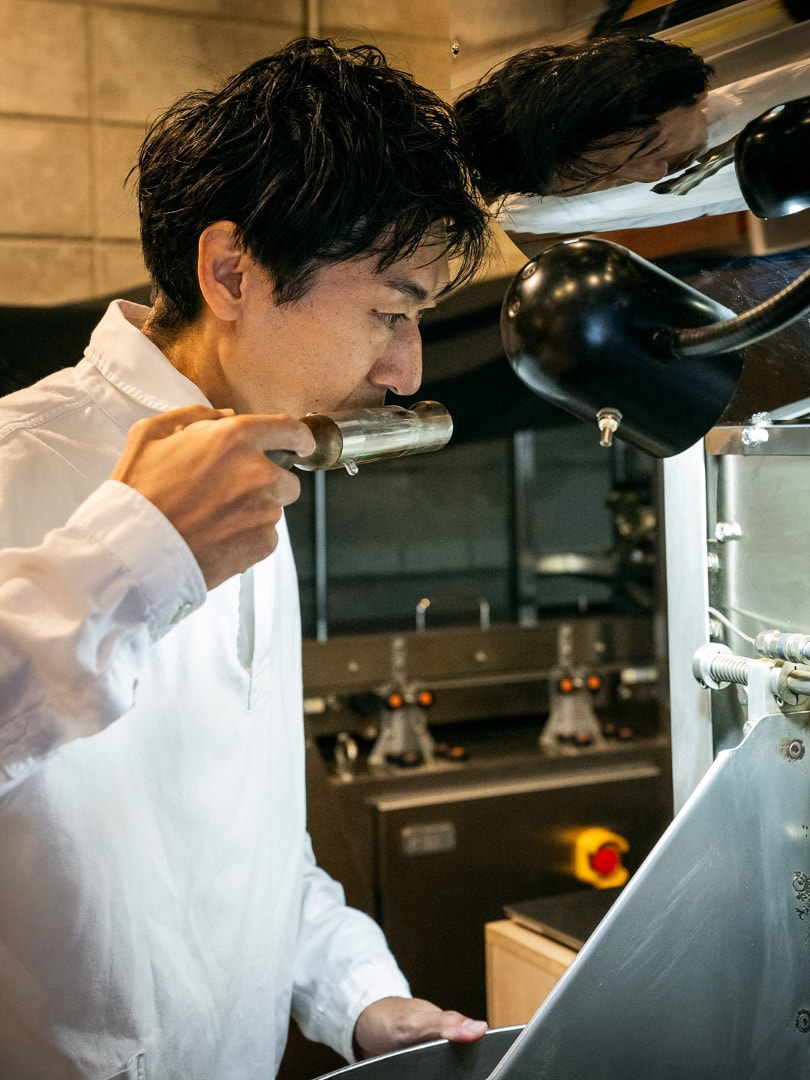 焙煎した豆の香りを確かめる。コーヒーの味わいを設計するのは焙煎士の仕事。