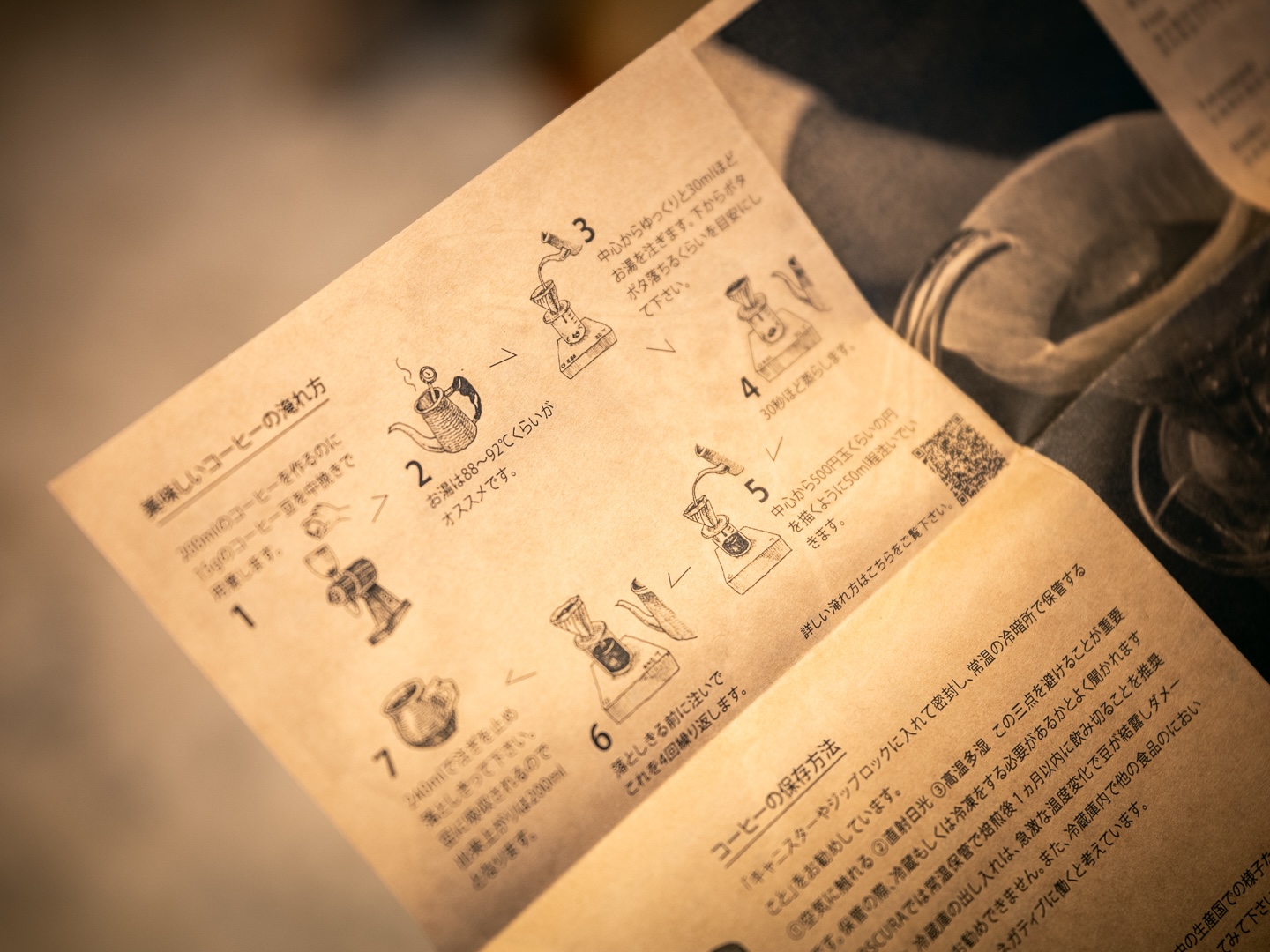 自宅でホッとできる特別な時間を過ごしてもらえるように、オブスキュラではコーヒー豆の販売も行っている。プロでなくてもおいしいコーヒーを味わえるように、柴さんに淹れ方のコツを教えてもらった。