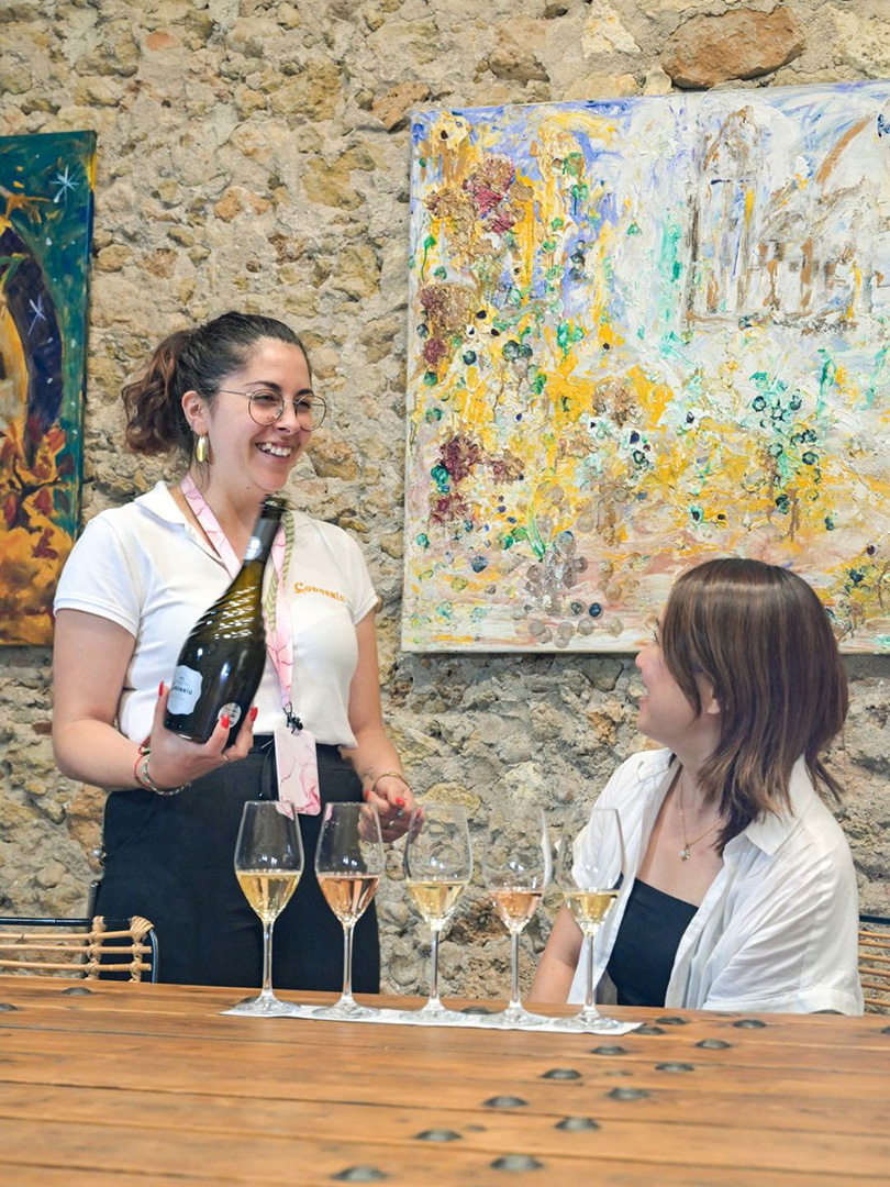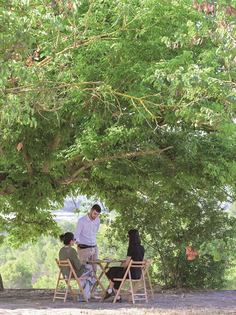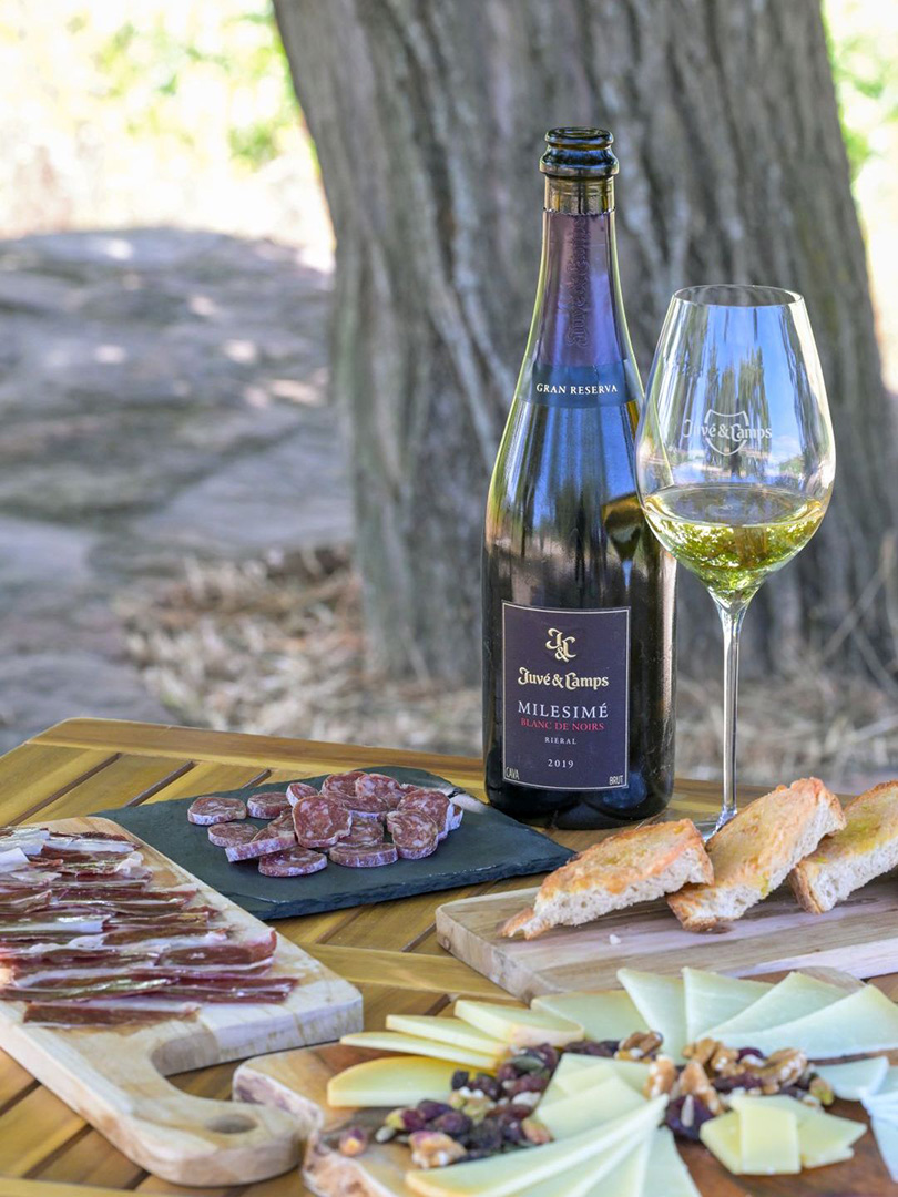 訪問者にとってうれしいことに、ここならではのすばらしいツアーがある。それは畑の一角、緑の樹の下で試飲ができるというもの。それも生ハムやサラミ、チーズなどとともに。心地よい風を感じながら、丁寧に時間と手間をかけられたカヴァのグラスを傾ける。スムースな口当たり、上品な香りを楽しむ、ぜいたくで優雅な旅の時間だ。