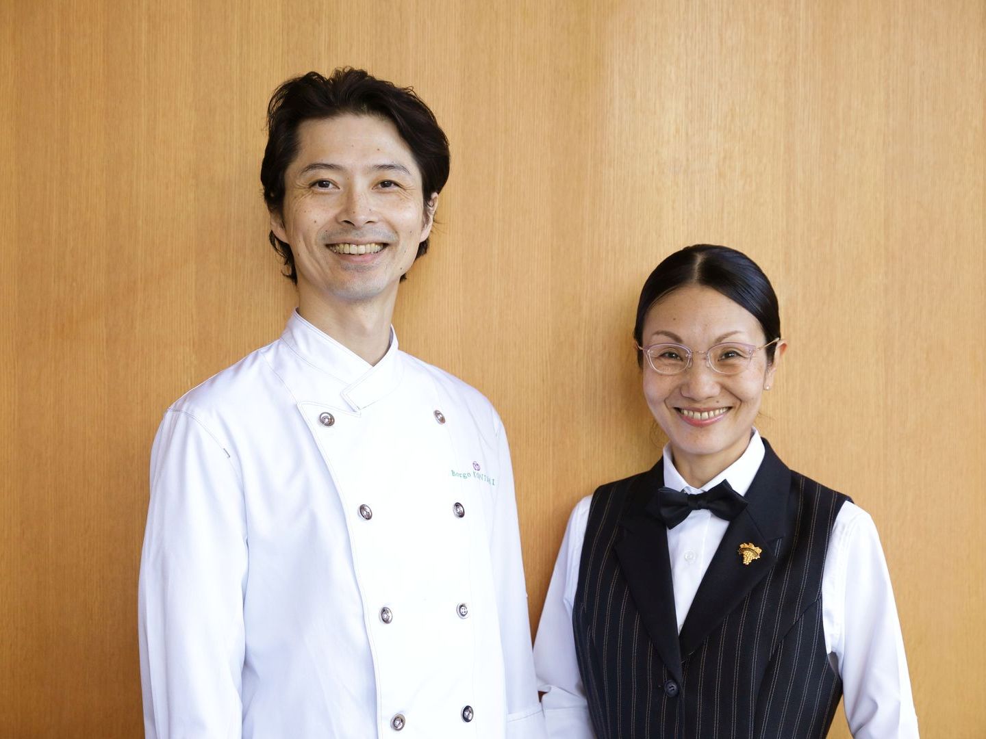 ソムリエの妻・愛子氏とともに山嵜氏が温かく迎えてくれる。