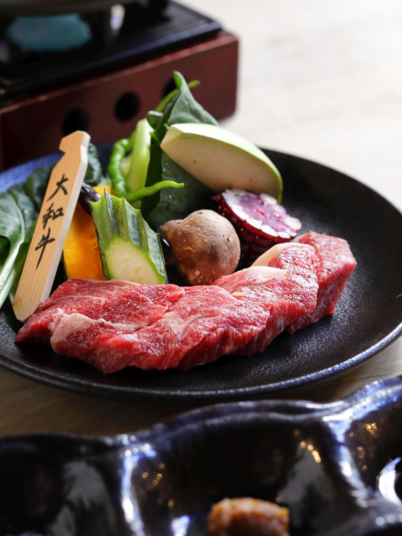 一部のコースで登場する「大和牛のリブロースステーキ」にも大和伝統野菜や海外伝統野菜が添えられる。