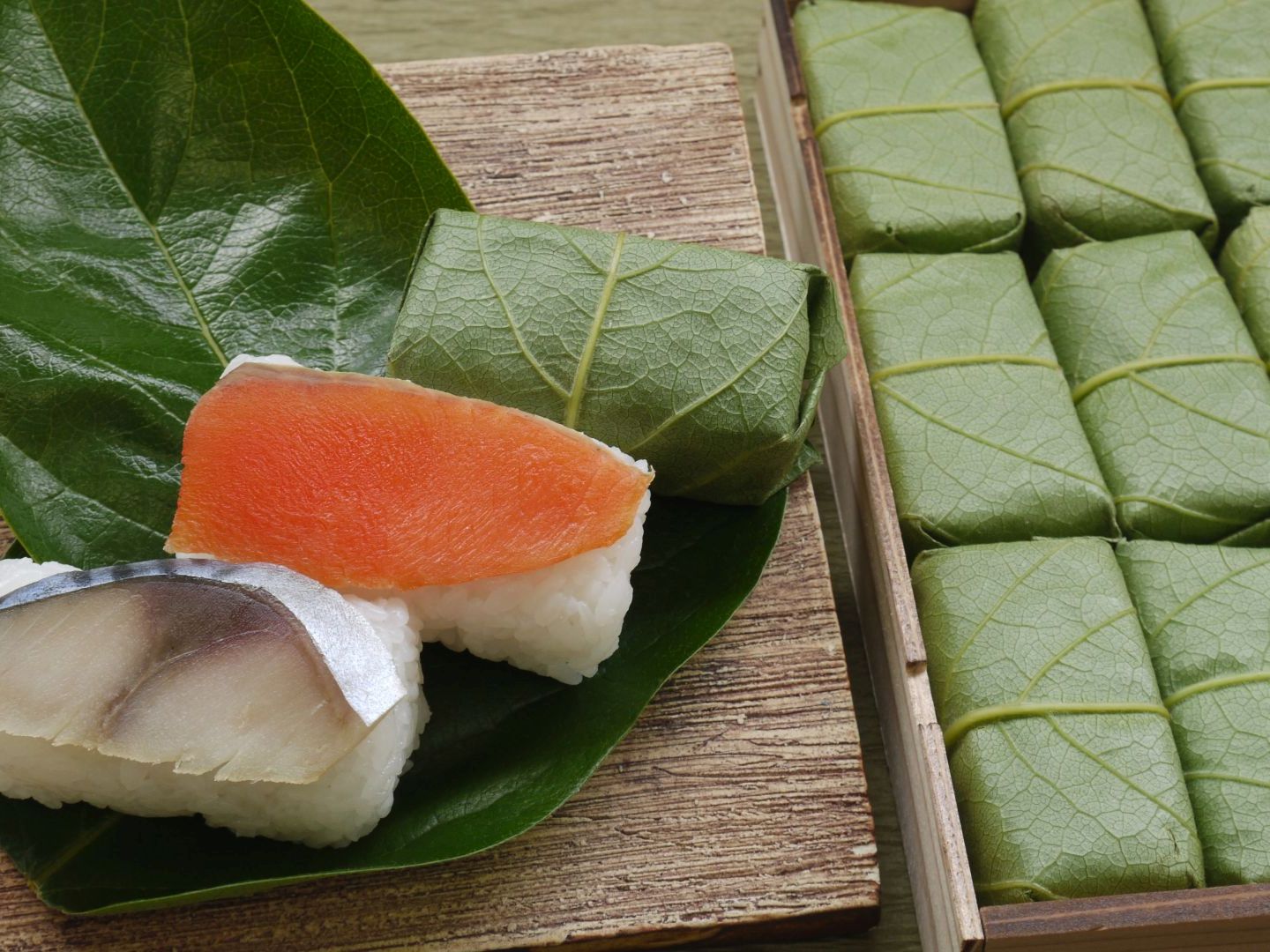 薄切りの魚の切り身をごはんにのせ、柿の葉でくるんで押しをかける柿の葉寿司は、奈良県の郷土料理のひとつ。「平宗 奈良店」は創業160年以上の柿の葉寿司の専門店だ。国産真鯖、鮭、穴子など、種類もさまざま。持ち帰りのほか、煮麺などとのセットメニューを店内で味わうことができる。