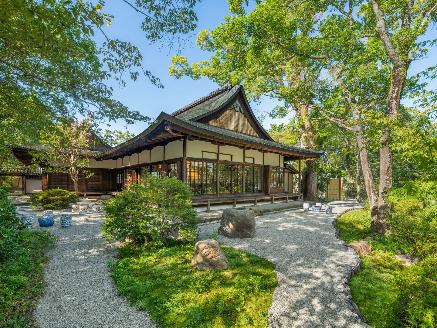 写真は旧興福寺子院「世尊院」をリノベーションしたカフェ。滞在中は敷地内にある「吉城園」の散策もぜひ。池の庭、苔の庭、茶花の庭と茶室からなる。